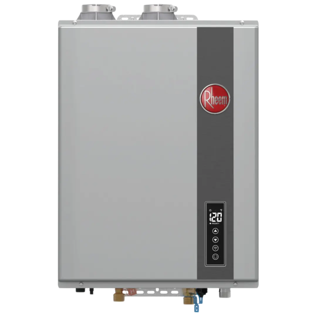 Calentador instantaneo de condensacion 199,900 BTU/hr, modelo RTGH-95; eficiencia minima de 93%, de 24 a 27 litros/minuto, para Gas Natural o Gas L.P.