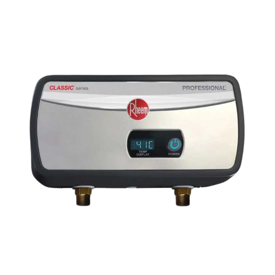 Calentador instantaneo electrico de 1.9 litros/minuto para 1/2 servicio, modelo RTX3-04, encendido automatico por demanda de agua, control por medio de perilla reguladora y display LED, alimentacion electrica 127 Volts Corriente Alterna, 29 amperes, 3.2 kW