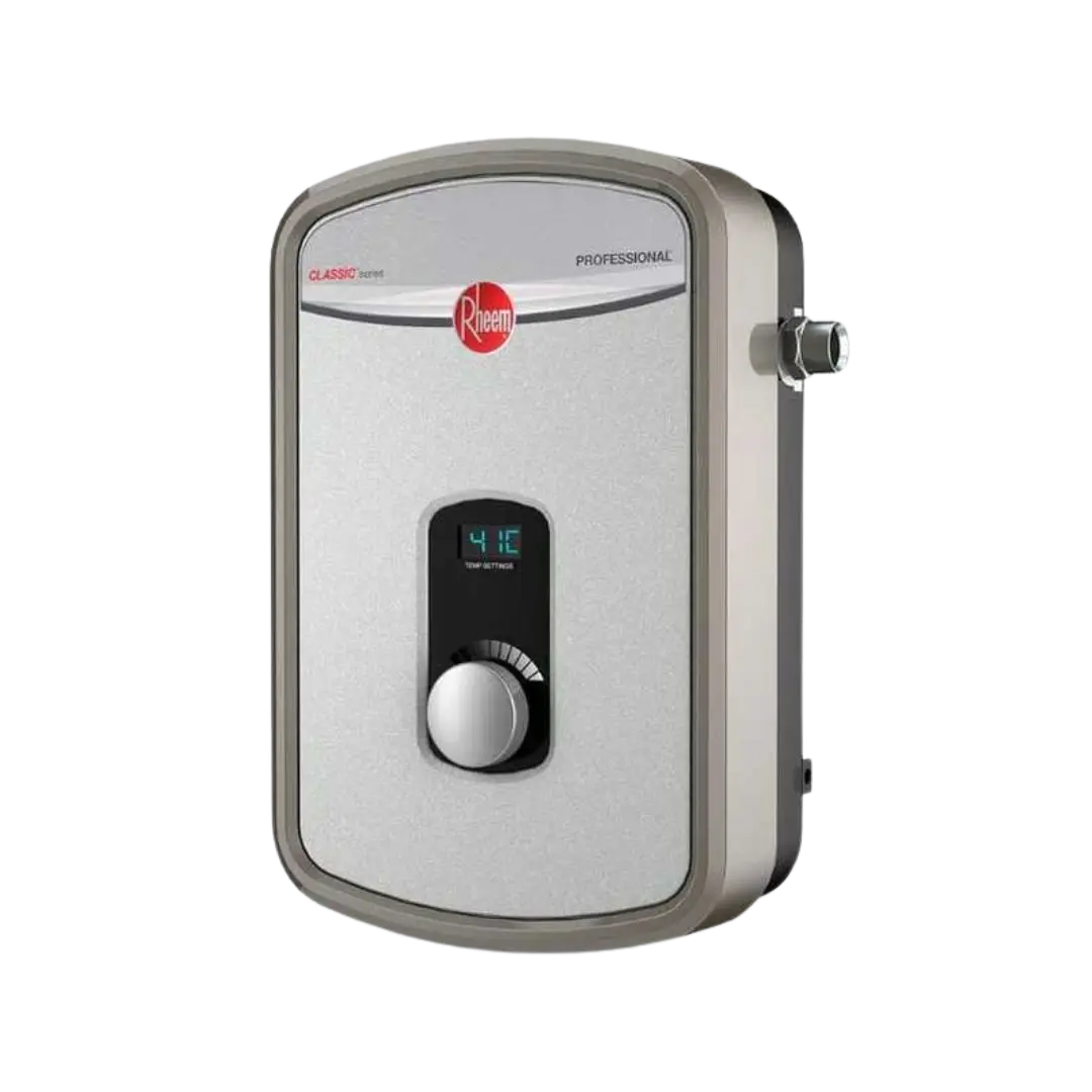 Calentador instantaneo electrico de 7 litros/minuto para 1 1/2 servicios, modelo RTX3-13, encendido automatico por demanda de agua, control por medio de perilla reguladora y display LED, alimentacion electrica 240 Volts Corriente Alterna, 54 amperes, 13 kW
