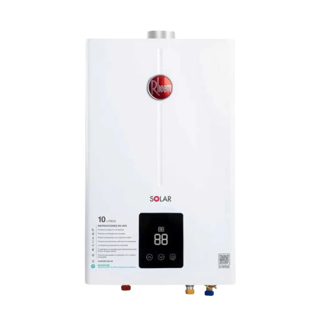 Calentador instantaneo tiro forzado a gas de 10 litros/minuto, para 2 servicios, modelo RHTF-CHN10, con display digital touch y encendido electronico por demanta de agua caliente, modulante para gas Natural y gas L.P.