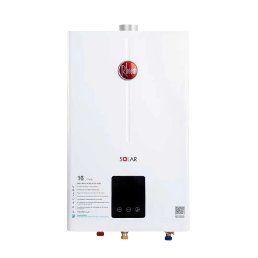 Calentador instantaneo tiro forzado a gas de 16 litros/minuto, para 3 servicios, modelo RHTF-CHN16, con display digital touch y encendido electronico por demanta de agua caliente, modulante para gas Natural y gas L.P.