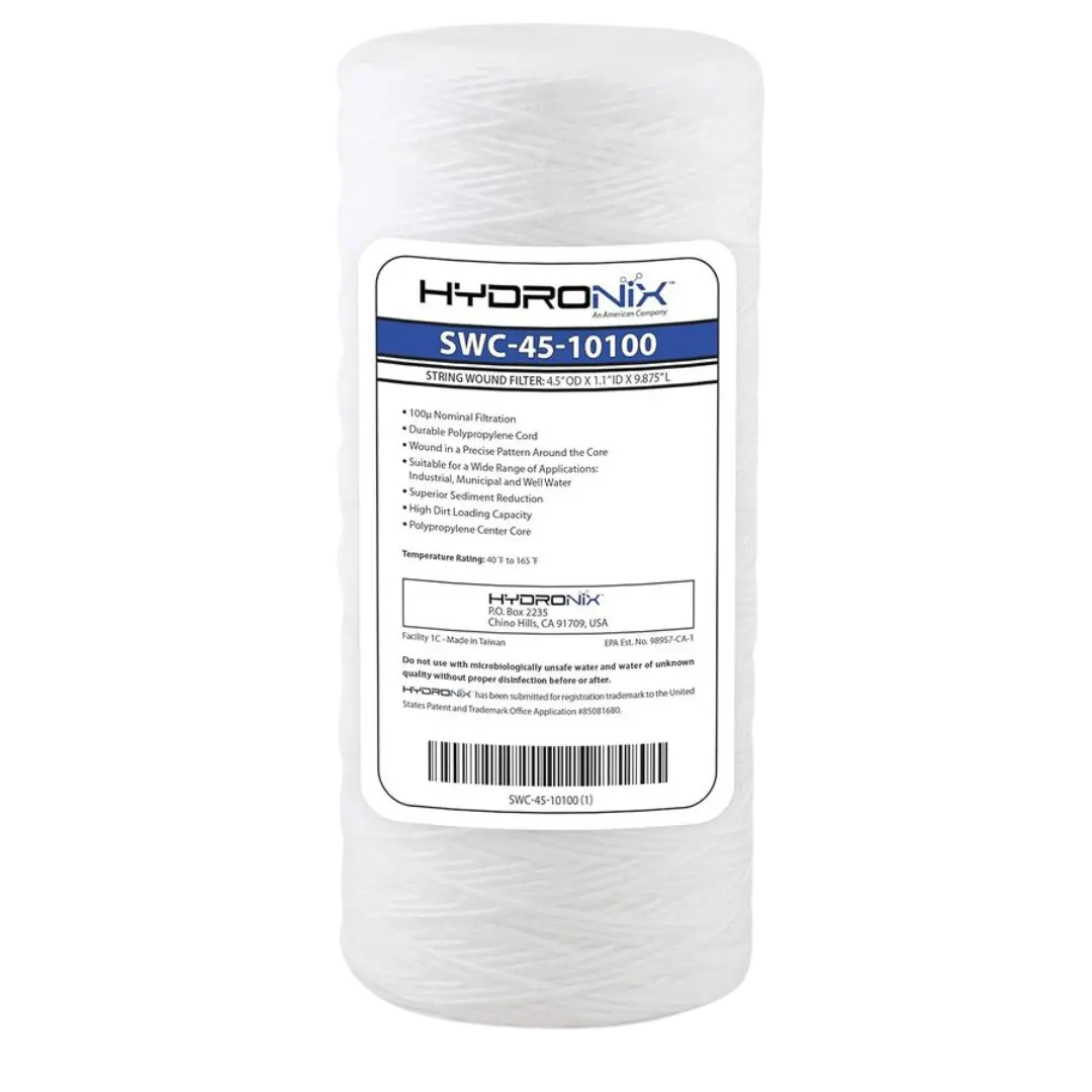 Filtros hilados para sedimentos SWC, marca Hydronix, fabricados en polipropileno hilado, diametro 2 1/2″ o 4 1/2″, longitud de 10″ a 50″, 0.5 a 100 micras