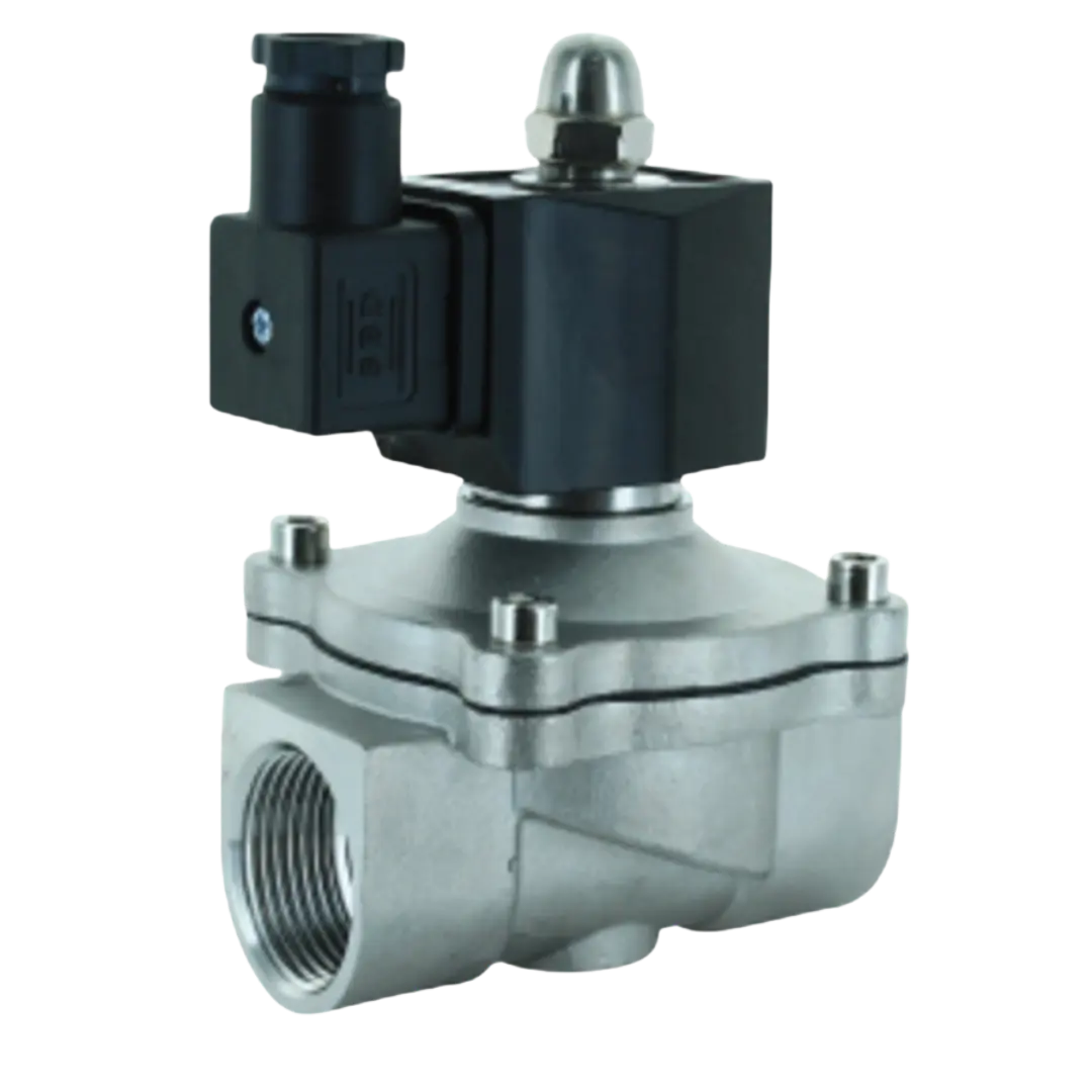 Valvula solenoide Dewit, cuerpo en acero inoxidable, asiento NBR, conexion roscada NPT, alimentacion electrica 110 VAC, 220 VAC 1ph o 24 VDC, normalmente abierta o normalmente cerrada